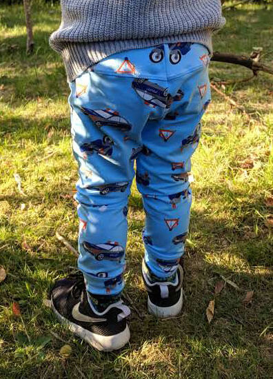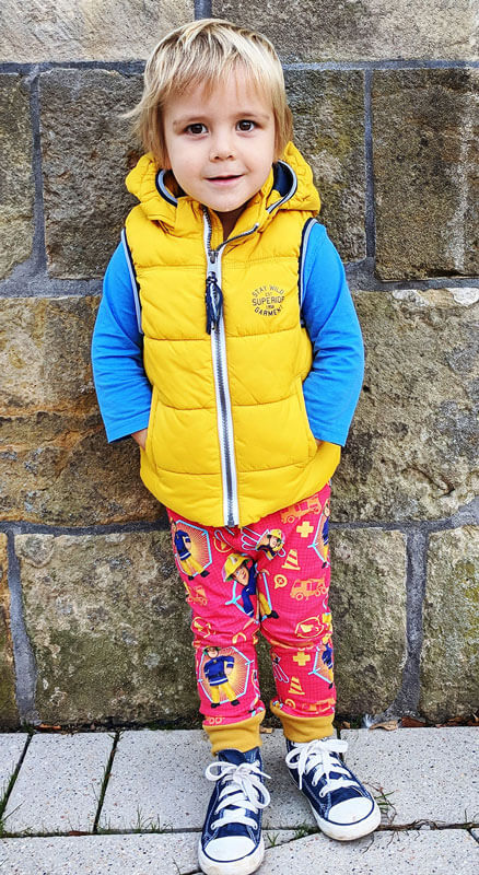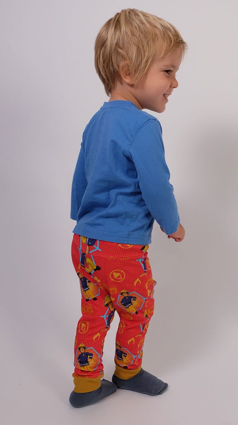 Materialvorschlag: Alle weichen, dehnbaren Stoffe. Diese Hose kann aus Sommer und Winterstoffen genäht werden.