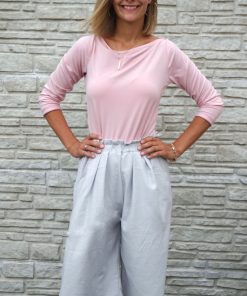 Ein hochwertiger Single-Jersey aus Bambus/Elasthan in Grau. Der Jersey eignet sich ideal für Kleider, Shirts, Hosen, Beanie Mützen, Loopschals, Pumphosen und Jogginghosen. Der Jersey ist vom Fall und Griff her mit einem Viskosejersey zu vergleichen. Er trägt sich angenehm auf der Haut. Abbildung Schnittmuster Wasserfallshirt Kat, Haremshose Naomi, Shirt Senta in anderer Farbstellung. Abbildung Shirt Sue in Weiß.