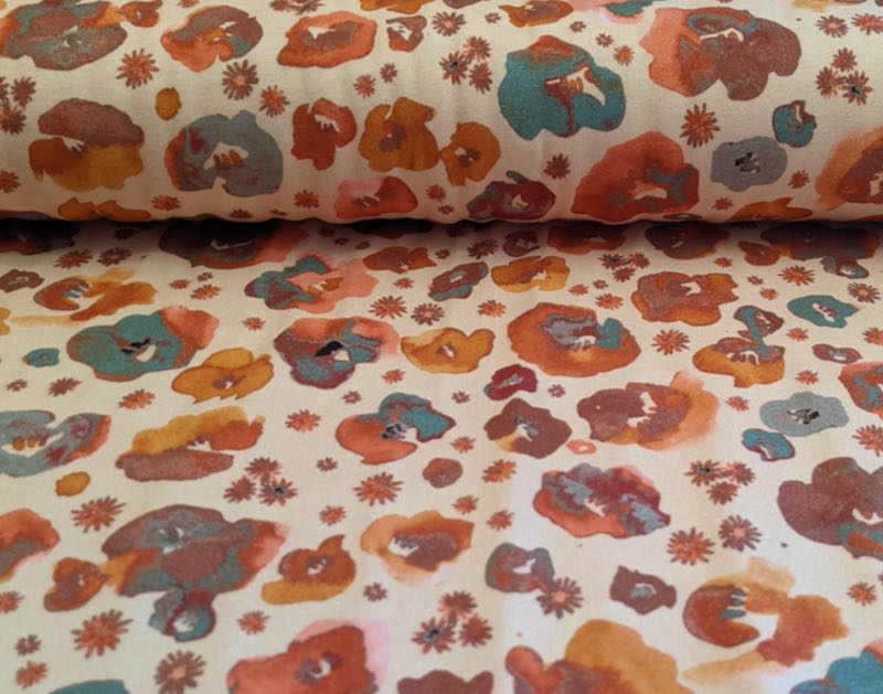 Jersey, Blumen Aquarelloptik auf Nude