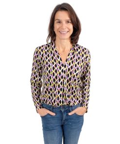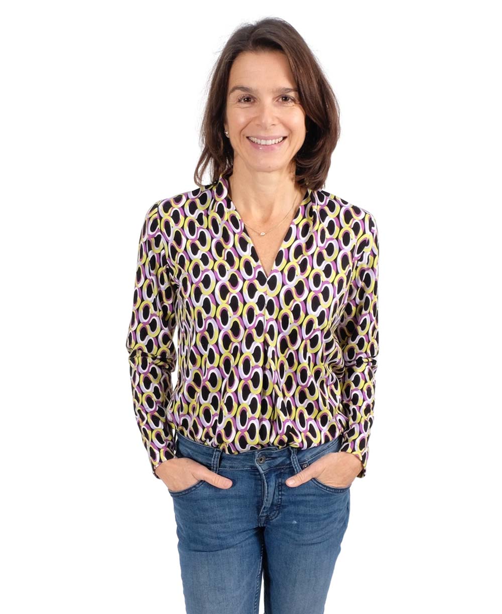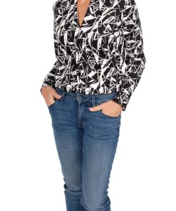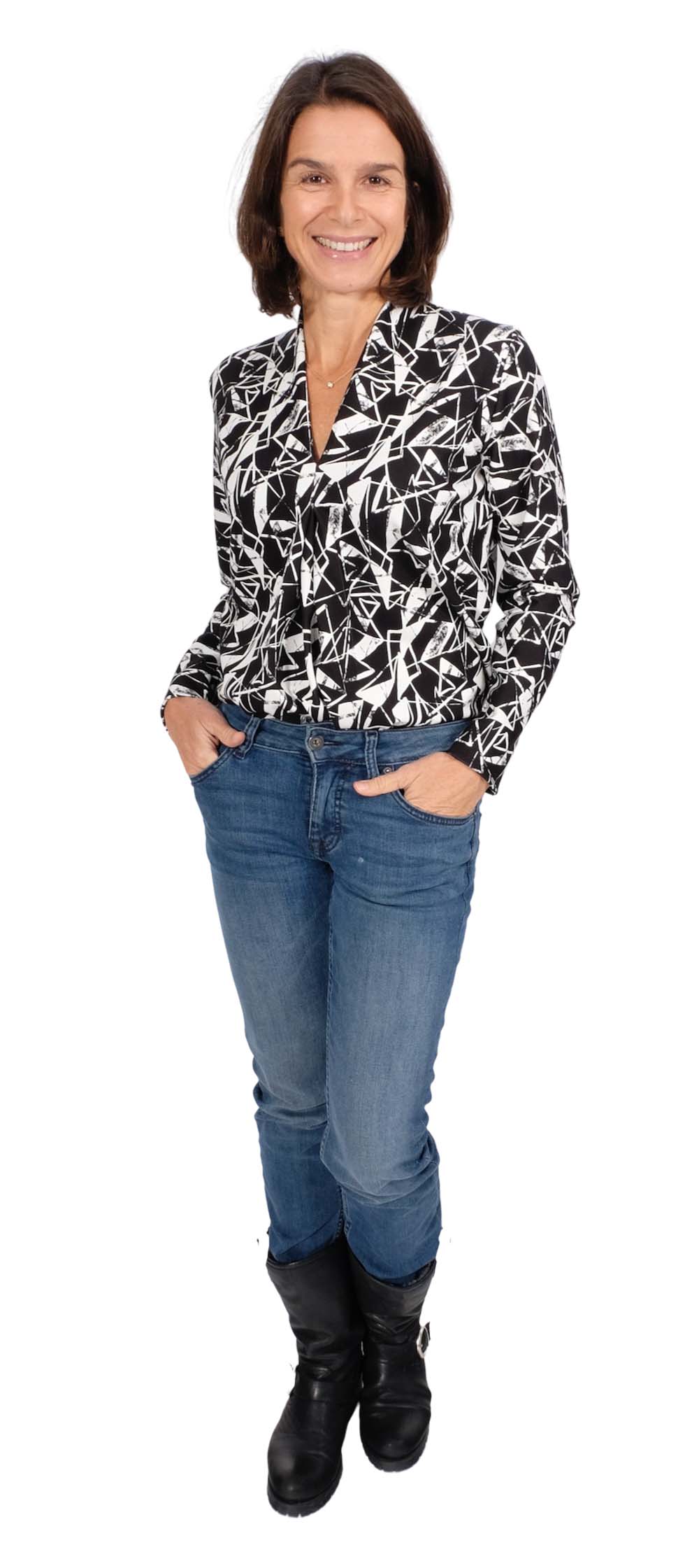 Eine wunderschöne dehnbare “Jersey” Qualität mit schwarz weißer Musterung. Ideal für Mützen, Schals, Oberteile, Jacken, Kleider, Röcke und vieles mehr. Abbildung Schnittmuster Kirana. Vom Fall und Haptik her ist der Stoff mit einem weichen Jersey zu vergleichen.