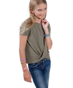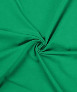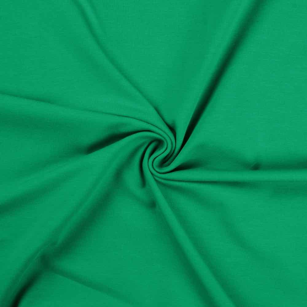 Ein hochwertiger Jersey Stoff aus Baumwolle/Elasthan in einem Khaki Grün. Das Material ist ideal für Mützen, Loopschals, Pumphosen und Oberteile. Abbildung Knotenshirt Aniko in anderer Farbstellung.