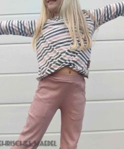 Dieser wunderschöne dehnbare Jerseystoff mit Rippenstruktur kommt nicht nur bei Kindern sehr gut an. Vom Prinzip her lässt er sich auch mit einem festeren Viskosejersey vergleichen. Stirnbänder, Mützen, Kleider, Shirts, Hosen, Mützen und vieles mehr lässt sich hier wunderbar daraus nähen. Die kreativen Möglichkeiten sind vielfältig. Der Artikel ist weich, anschmiegsam und dehnbar. Abbildung Schnittmuster Shirt Adina, Hose Philippa in Altrosa, das Shirt Aniko in Mint und den Anzug Franny in Mint. Abbildung Kleid Melinda in Anthrazit. Hier auf Facebook stellen wir den Stoff vor.