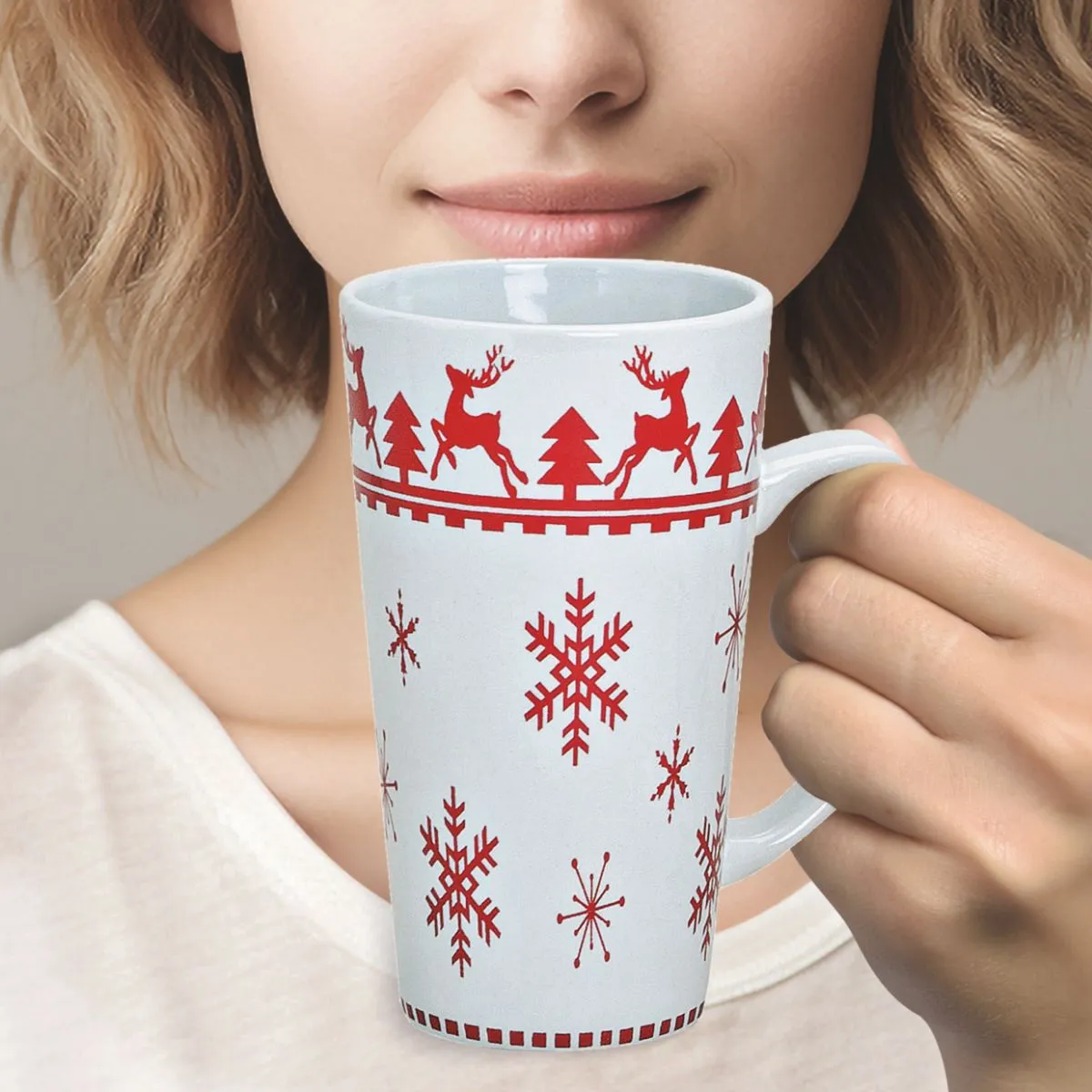 Jumbo Weihnachtstassen Tassen Becher 4-tlg. Set rot / weiß aus Keramik hergestellt je 14 cm / 450 ml