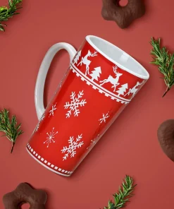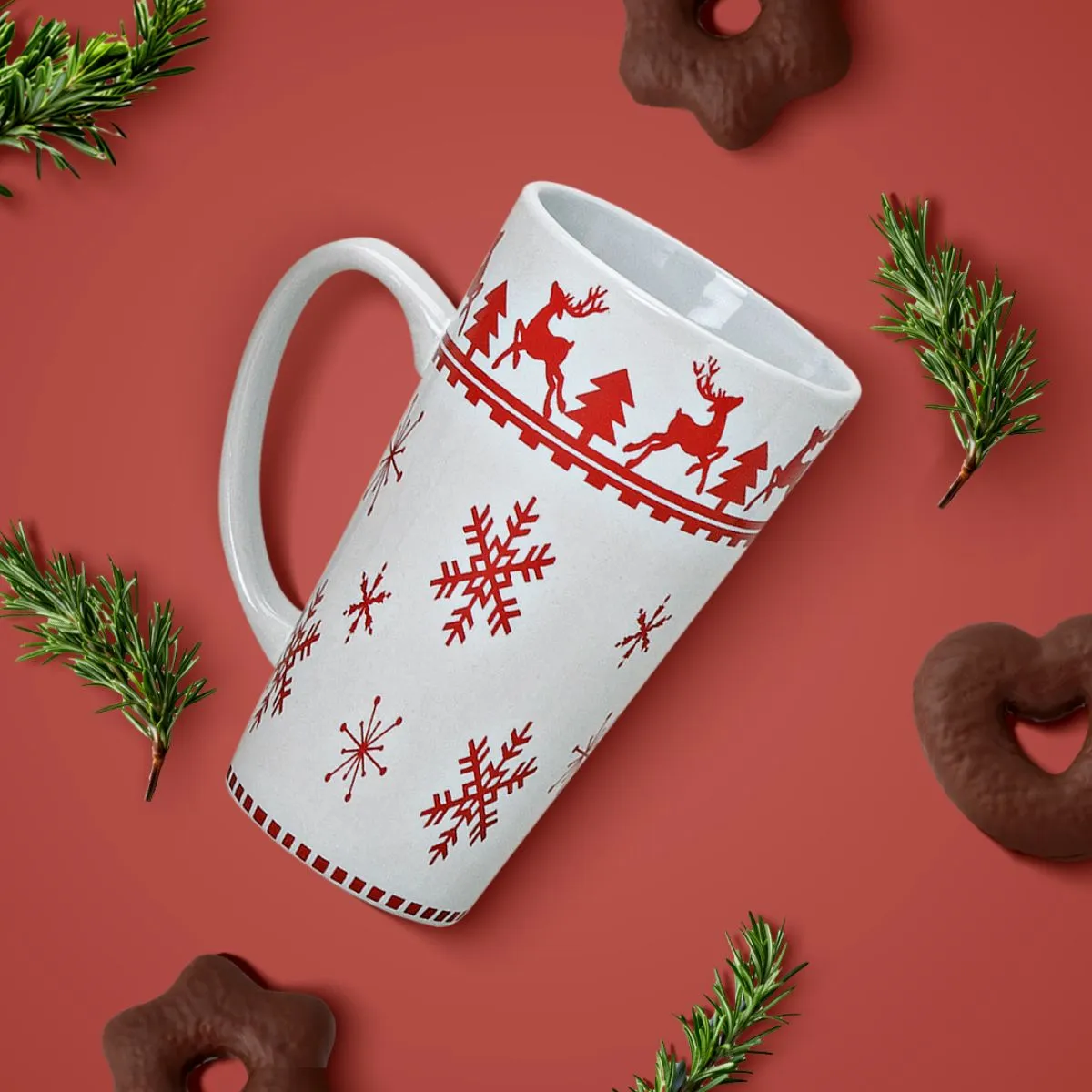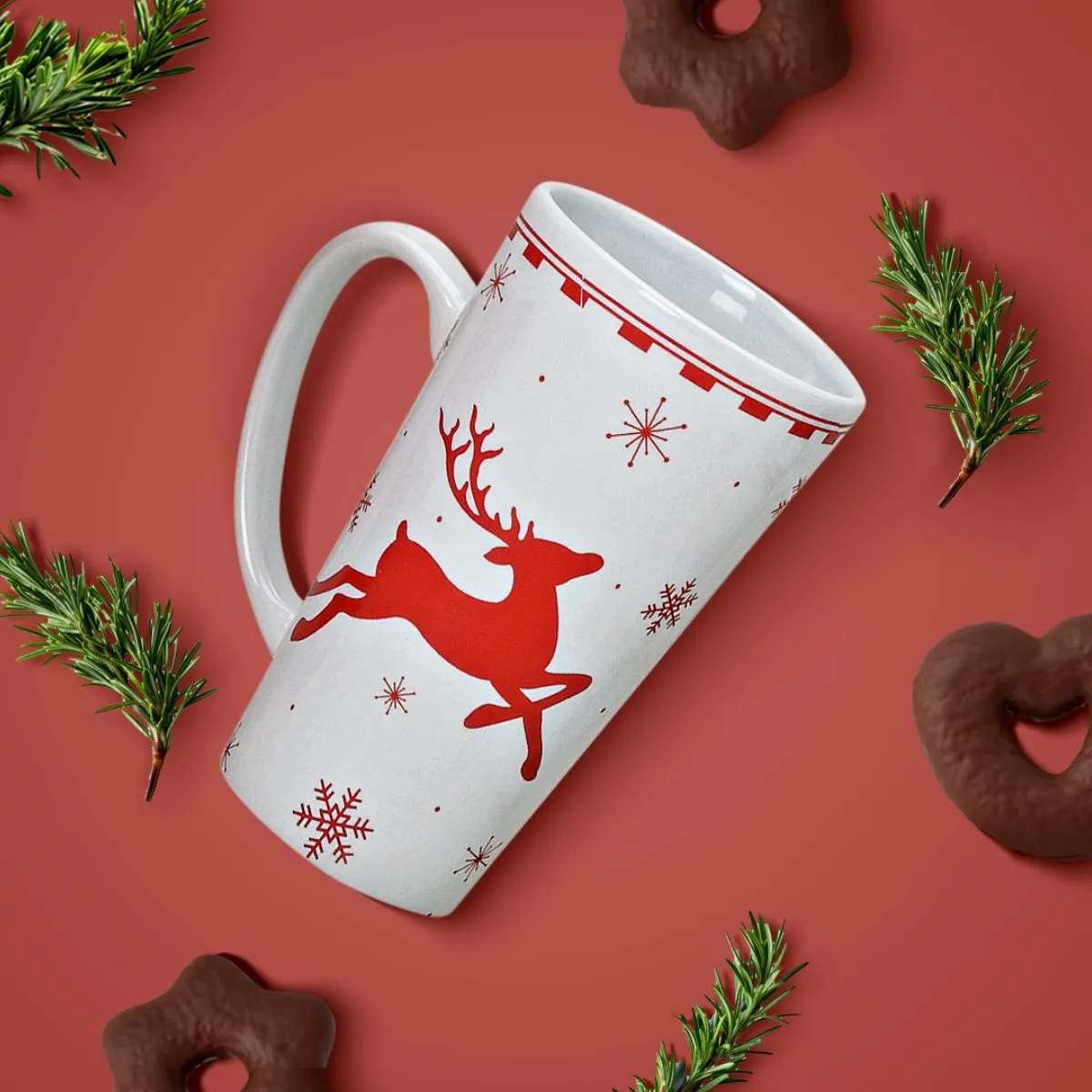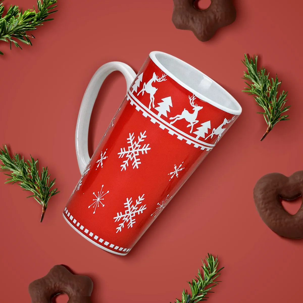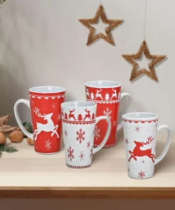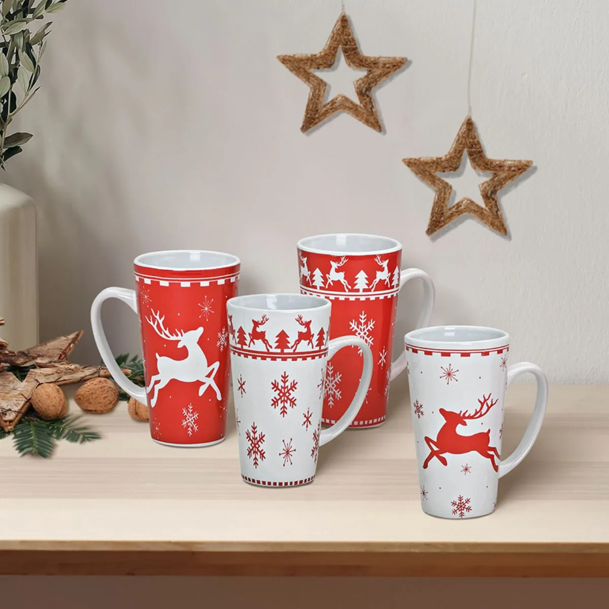 - Lieferumfang: 4 Stk. Große Jumbo Tassen mit weihnachtlichen Motiven in rot und weiß