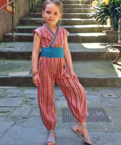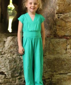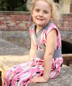 Dieser Jumpsuit ist ein ganz besonderes Teil weil die Schnittführung außergewöhnlich ist. Der Style ist für viele Figuren sehr gut geeignet. Wichtig ist, dass die Stoffe weich und fließend fallen. Du kannst die Hose am Saum nur einschlagen, damit wird sie dann weiter getragen, oder einkräuseln. Je nach Stoff und Verarbeitungsvariante bekommst Du gleich einen anderen Look. Für die kühleren Jahreszeiten kannst Du Deinem Kind ganz einfach ein T-Shirt darunter kombinieren oder eine Jacke drüber ziehen!