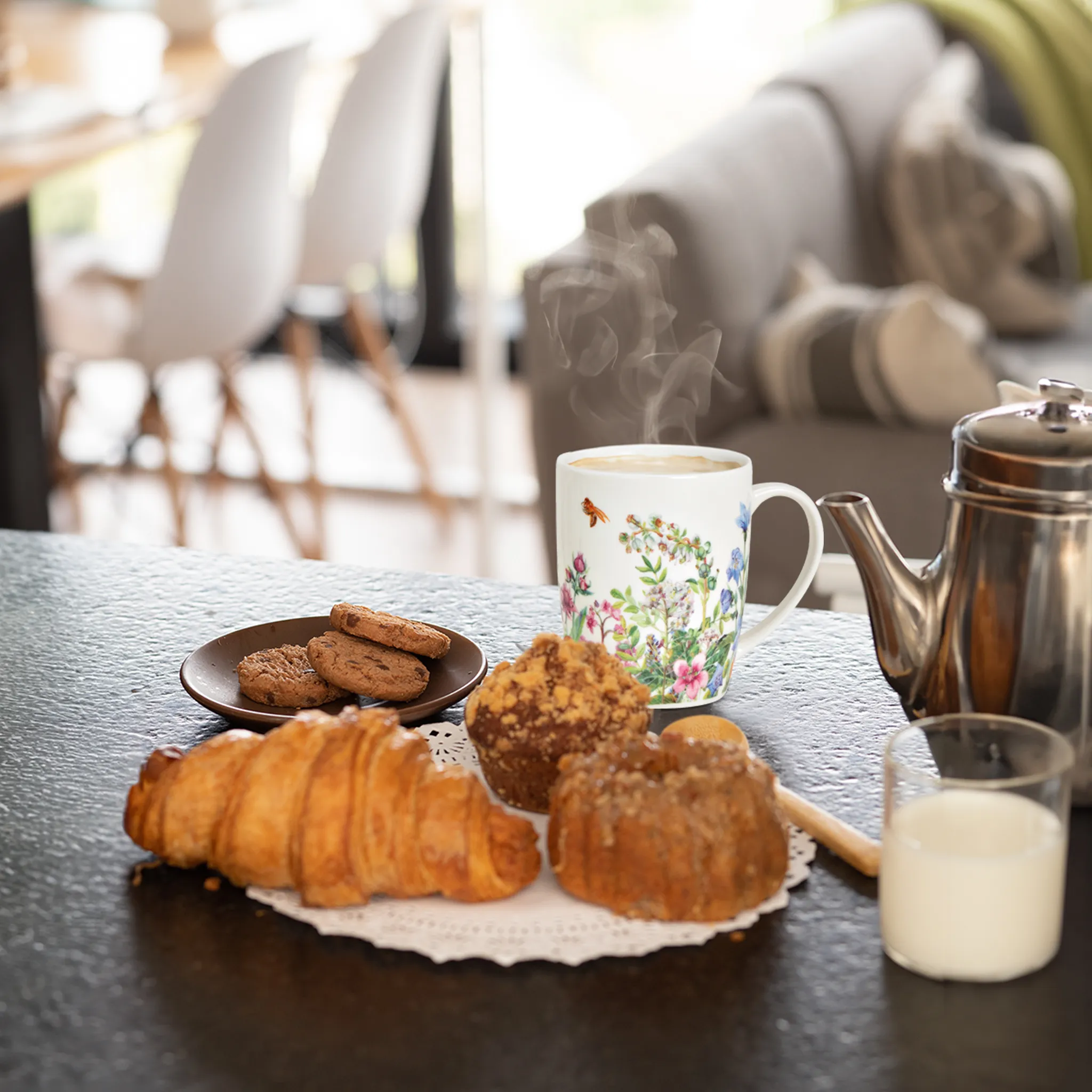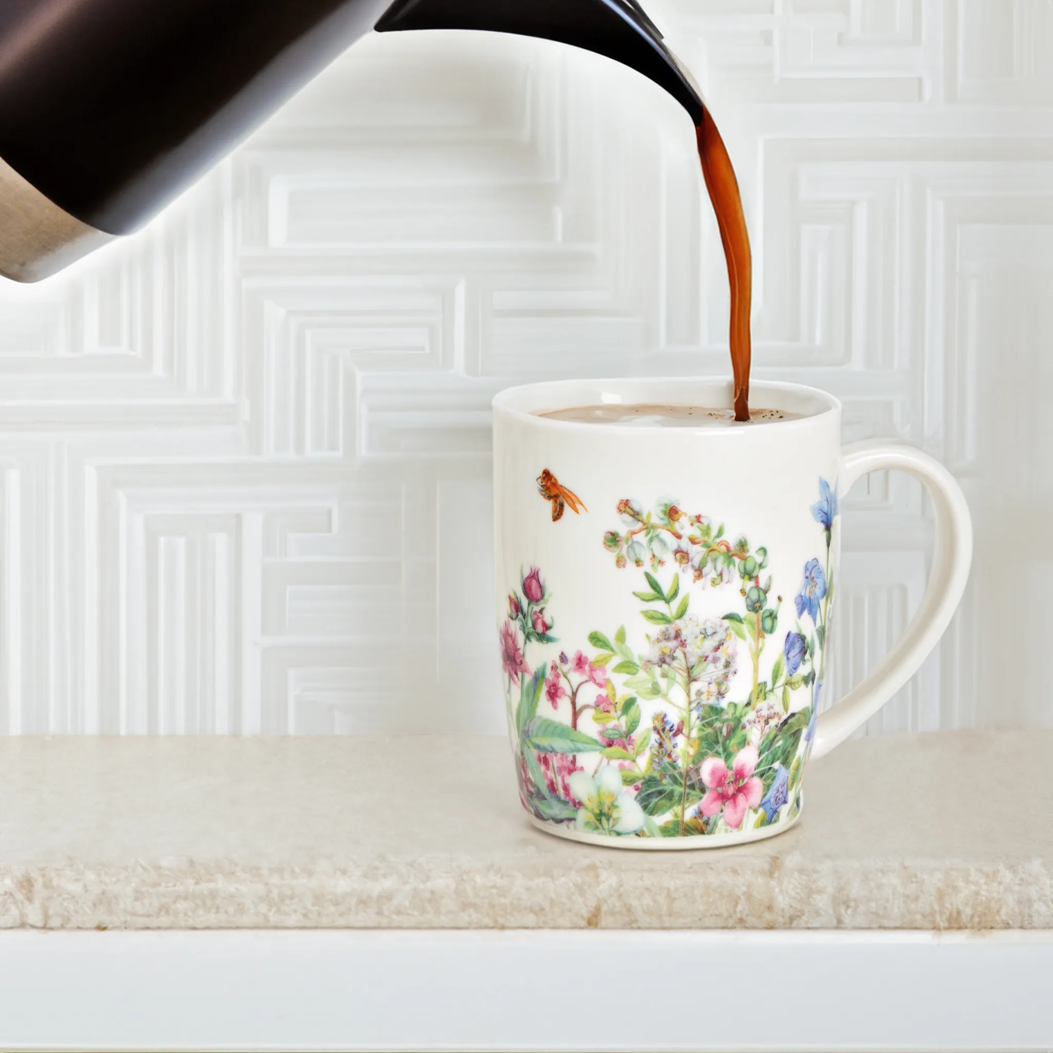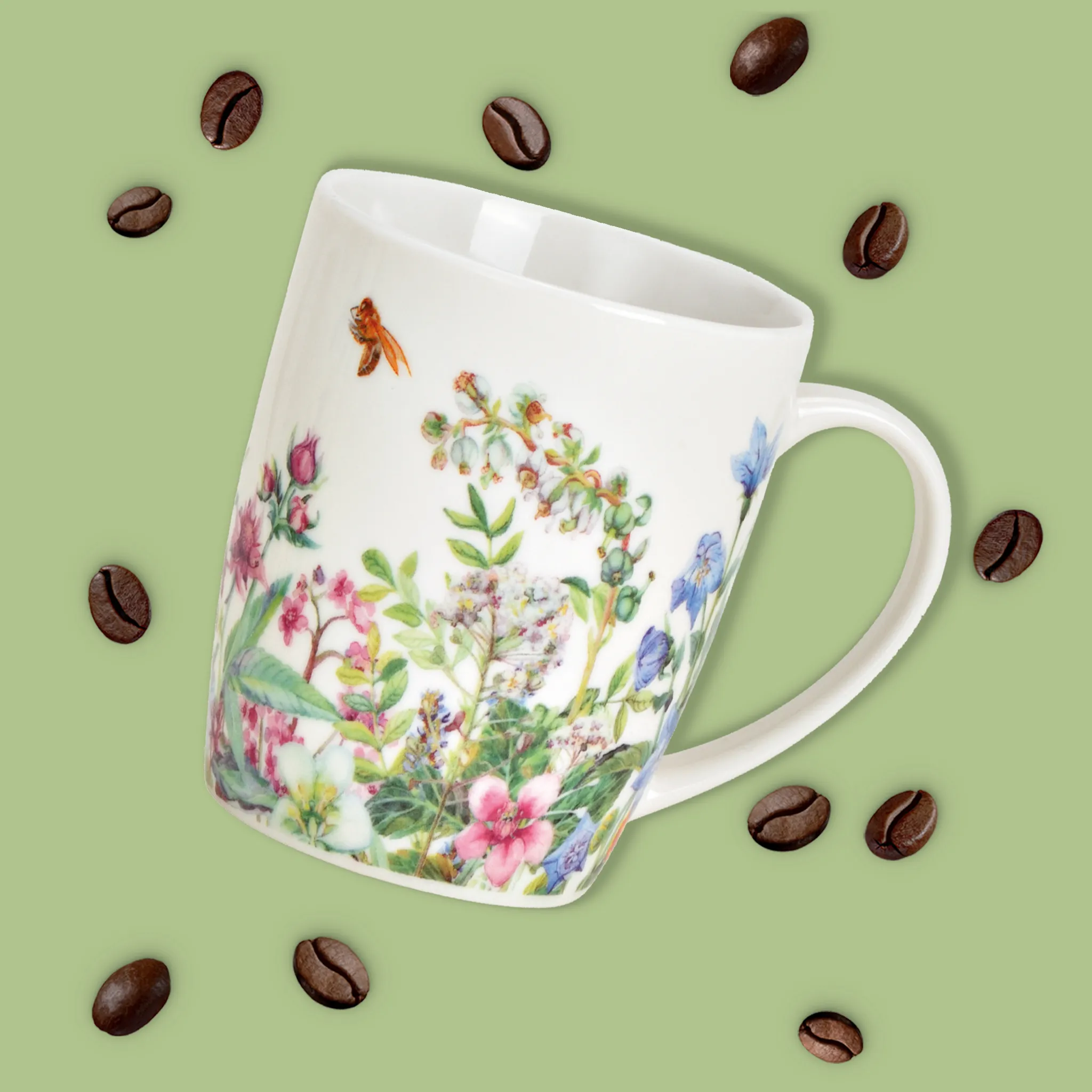 - Diese Tassen mit bunten Wildblumen und einer kleinen Biene schaffen ein schönes Ambiente an deinem Kaffeetisch