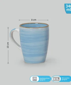 • Liebevoll gestaltete bunte Tassen, die aussehen wie mit Wasserfarben bemalt.