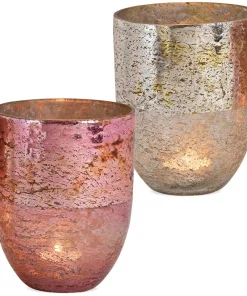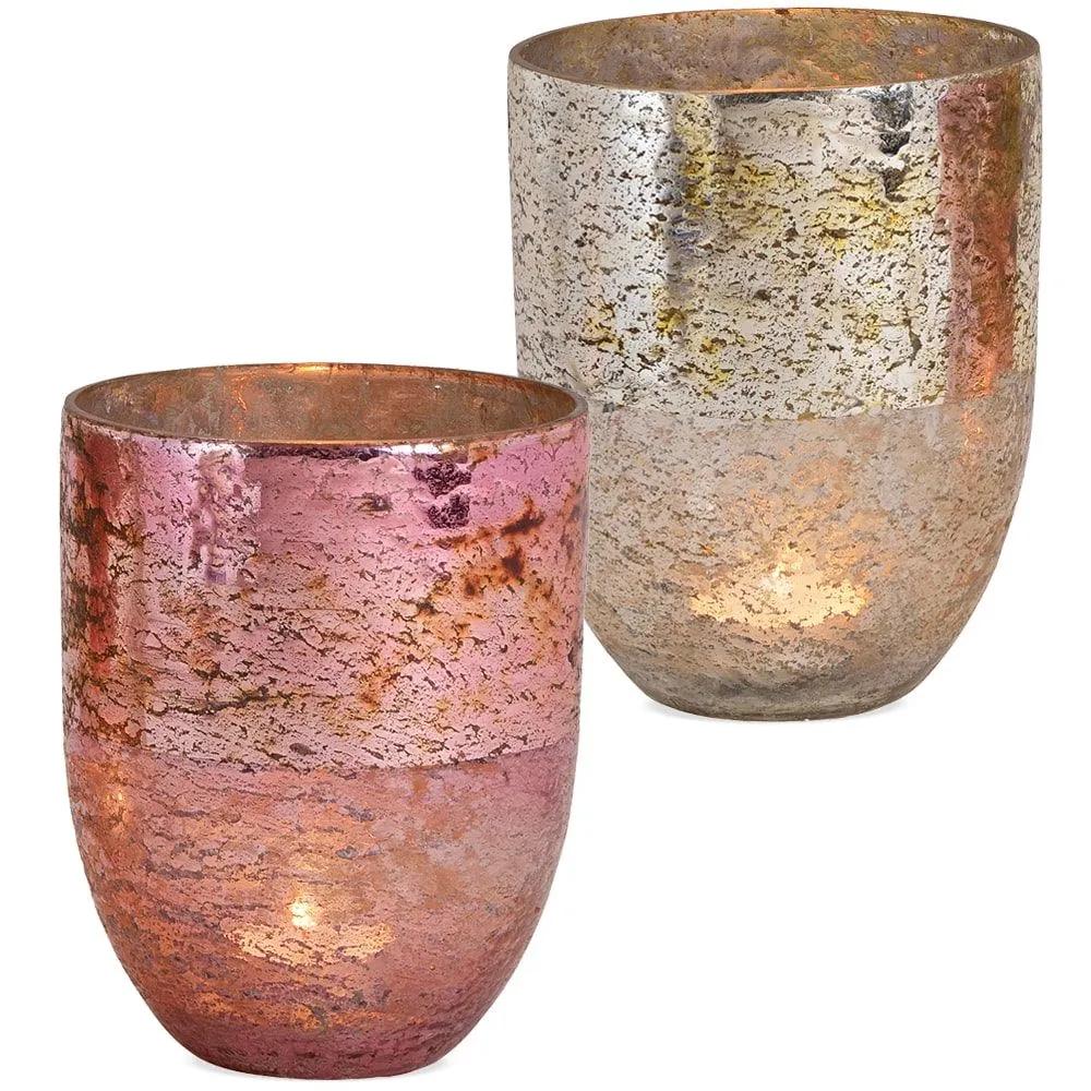 matches21 Windlichter Teelichtgläser Kerzengläser Shabby Bauernsilber Glaswindlicht glänzend creme & rosa 2er 2 Größen