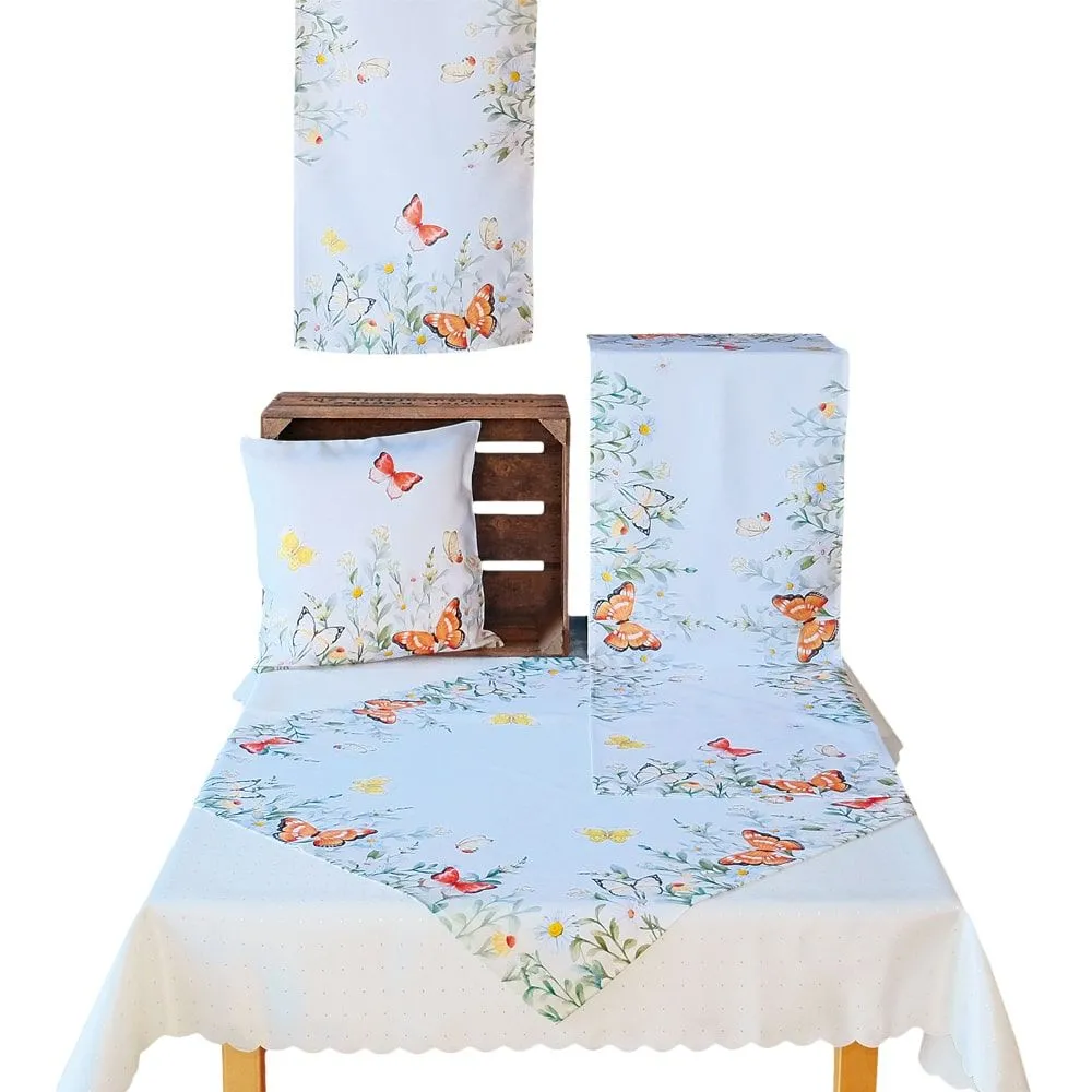 Kissenbezug Kissenhülle Schmetterlinge & Blumen weiß Stick bunt 1 Stk 40×40 cm