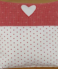 Kissenhülle Heimtextilien Landhaus Premium ROSI weiß-rot Punkte Borte rot Herz 40×40