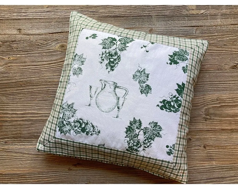 Kissenhülle Kissenbezug ELENI Wein Trauben Karo grün 40×40 cm Landhaus 1 Stk