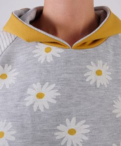 Wenn Du das Kleid mit langem Arm, Kapuze und Bündchen nähen möchtest brauchst Du zusätzlich noch 70 cm Stoff für die Kapuze und 45 cm Bündchenstoff für die Arm- und Saumbündchen.