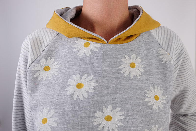 Materialempfehlung: Jersey oder dehnbare Sweatshirtstoffe.