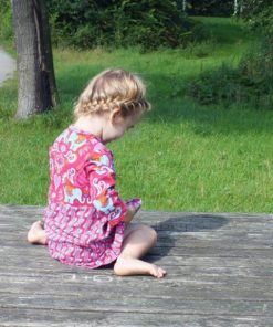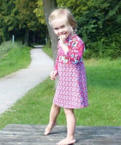 Der Kragen ist optional und kann ganz einfach weggelassen werden. Wir erklären im Ebook auch noch, wie man den Halsausschnitt mit Schrägstreifen näht. Dieses Kleid kannst Du in jeder Jahreszeit anziehen, mit oder ohne Strumpfhose oder mit langen oder 3/4 Ärmeln.