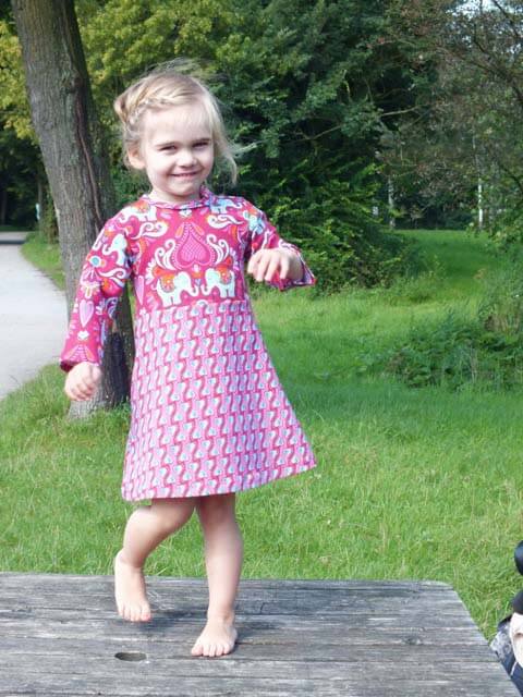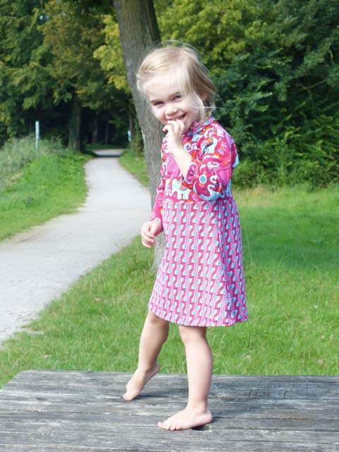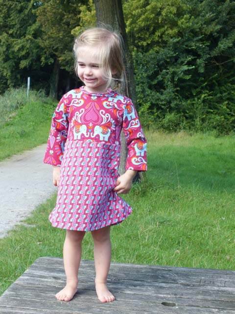 Der Kragen ist optional und kann ganz einfach weggelassen werden. Wir erklären im Ebook auch noch, wie man den Halsausschnitt mit Schrägstreifen näht. Dieses Kleid kannst Du in jeder Jahreszeit anziehen, mit oder ohne Strumpfhose oder mit langen oder 3/4 Ärmeln.