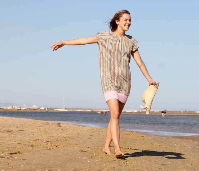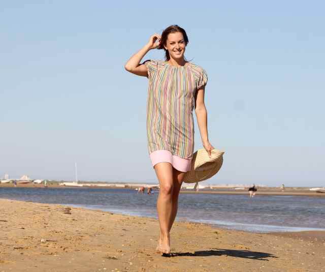 Das Kleid ist nicht nur für die Kleinen sehr hübsch, auch an den Großen sieht es sehr hübsch aus. Ob als Kleid oder als Tunika, beides ist möglich. Und es ist ein ganz besonders tolles Teil für alle schwangeren Frauen. Denn Du kannst das Kleid smoken, musst aber nicht. Wir erklären Dir im Ebook mehrere Varianten, Schritt für Schritt. Schau Dir unsere Bebilderung an was man so alles machen kann. Das Kleid kannst Du auch gut mit Body und Strumpfhose kombinieren und ganzjährig anziehen.