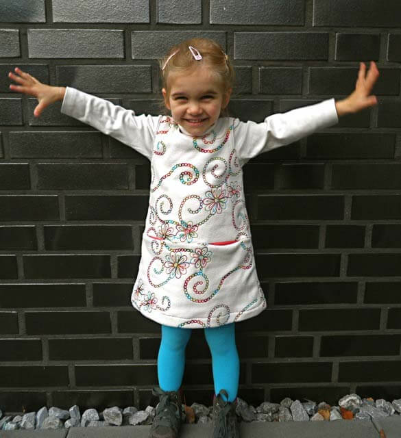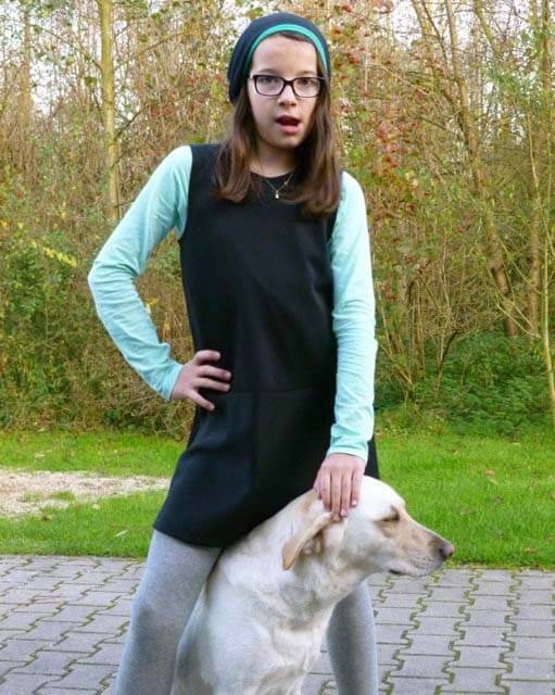 Dieses Kleid kann auf unterschiedliche Weisen genäht werden, somit ist ein richtiges Allrounder Modell. Für den Winter aus dickeren Stoffen mit einem Jerseyfutter, für den Sommer aus Jersey ohne Futter. Das Kleid ist auch ein tolles Anfängerprojekt..) Schau Dir hier bitte unser Video dazu an.