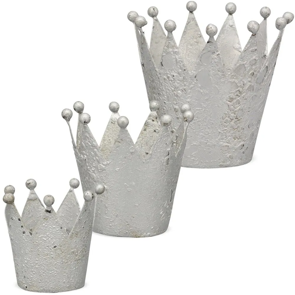 Kronen Dekoaufsteller Windlichter Dekokronen Aufsteller silber 3 Größen