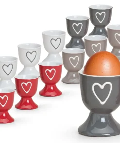 - VINTAGE: Schöne, zeitlose Landhaus-Stil Eierbecher mit hübschen Herz Ornamenten als zeitloses Accessoire für den Esstisch in den beliebten Farben grau, rot, weiß und taupe (grau-braun).