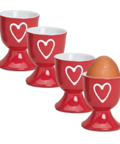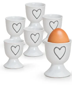 Bunte Landhaus-Stil Eierbecher mit Herzen Ornamenten in praktischen Sets