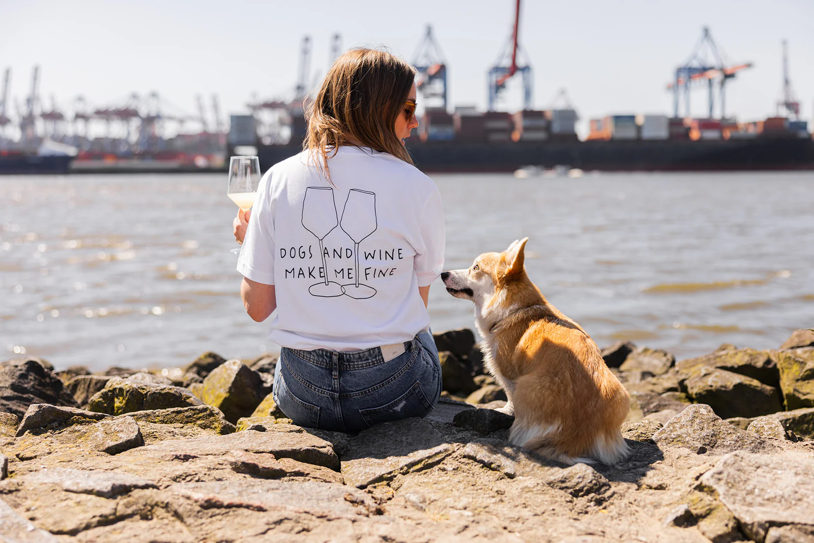 „DOGS AND WINE MAKE ME FINE“ T-Shirt von Lieblingspfote aus Hamburg
