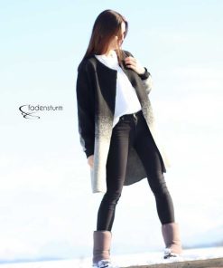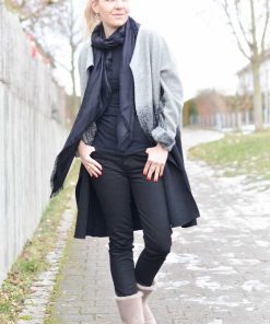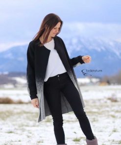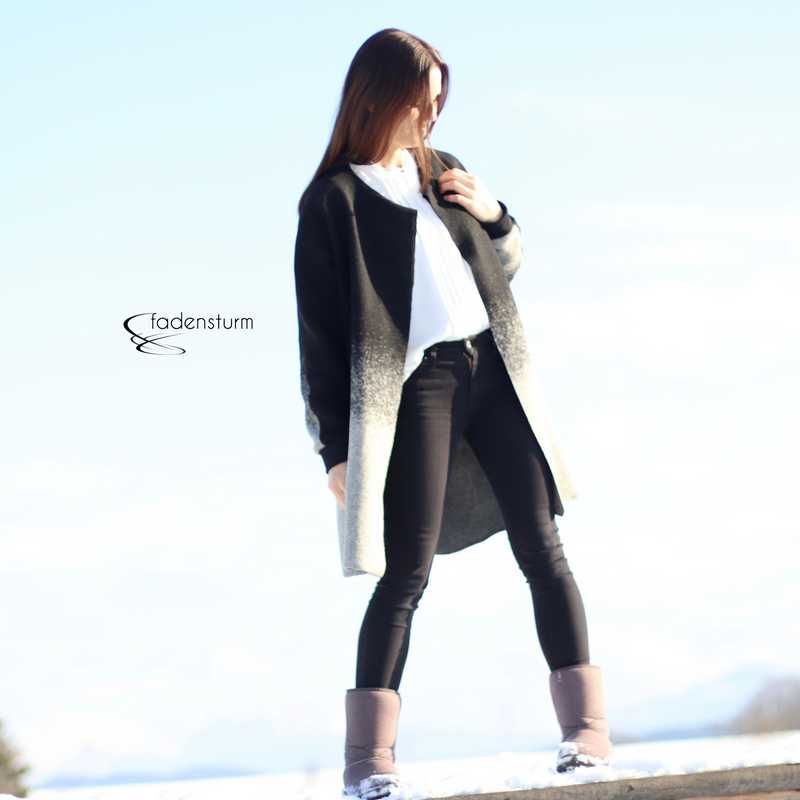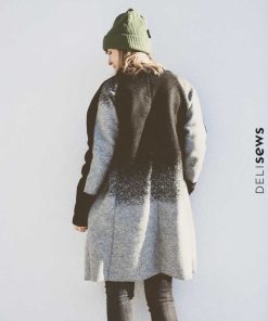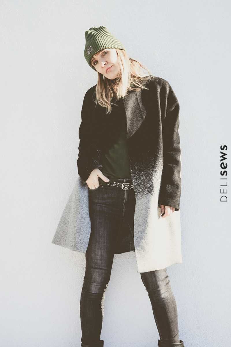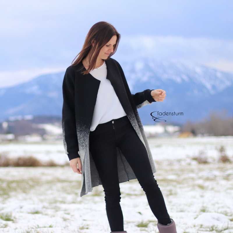 Dieser hübsche Mantel mit Rundhalsauschnitt wird ohne Futter verarbeitet und ist ein toller Begleiter durch das ganze Jahr. Er kann grundsätzlich aus allen leicht fallenden Stoffen genäht werden und bietet viele Kombinationsmöglichkeiten. Die Kanten werden hier offen verarbeitet, dadurch ergibt sich ein toller Look. Bitte bei der Stoffauswahl darauf achten! Unser Strickfleece eignet sich hier hervorragend! Wer den Mantel am Halsausschnitt mit offenen Kanten vearbeiten möchte kann das natürlich tun. In dem Falle Nahtzugabe dazugeben und einen Beleg zuschneiden. Das ist aber nur für Fortgeschrittene zu empfehlen. Im Schnittmuster ist der Beleg nicht enthalten!