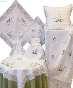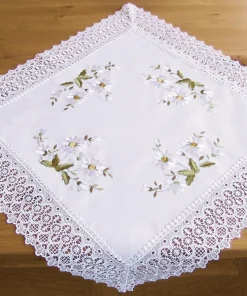 Mitteldecke Tischdecke Stick Voile Stoff mit Häkelkante Tischwäsche 60×60 cm