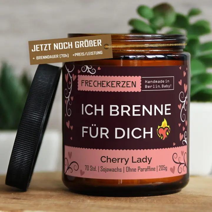 mysoy Duftkerze, handgemacht in Berlin, 100% Sojawachs, hochwertige Duftöle, „Ich brenne für dich“, Cherry Lady