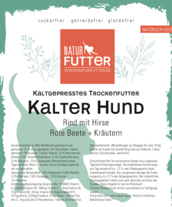 Kalter Hund Rind & Hirse – Naturfutter Trockenfutter ist ein Alleinfuttermittel für erwachsene Hunde und Junghunde.