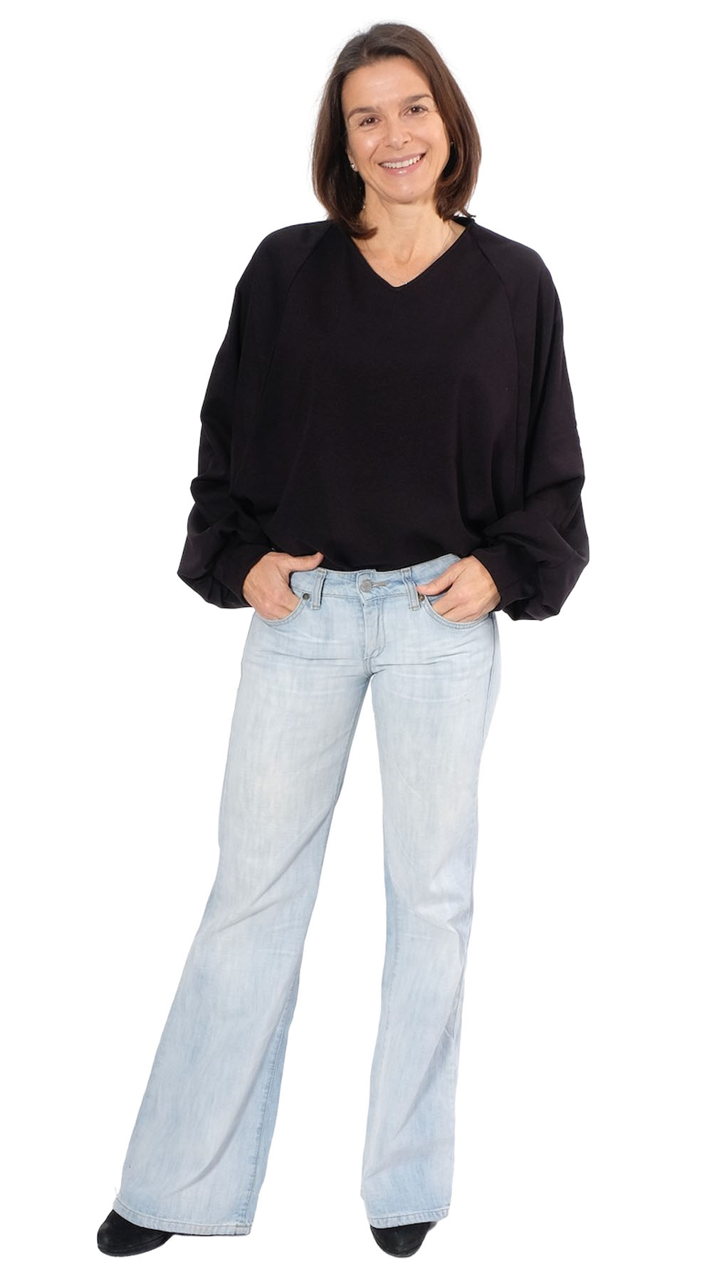 Stoffempfehlung für diesen Style: Leichte Sweatstoffe, Jersey oder auch Viskose-Stoffe. Dieses Shirt kann aus Sommer- und Winterstoffen genäht werden.