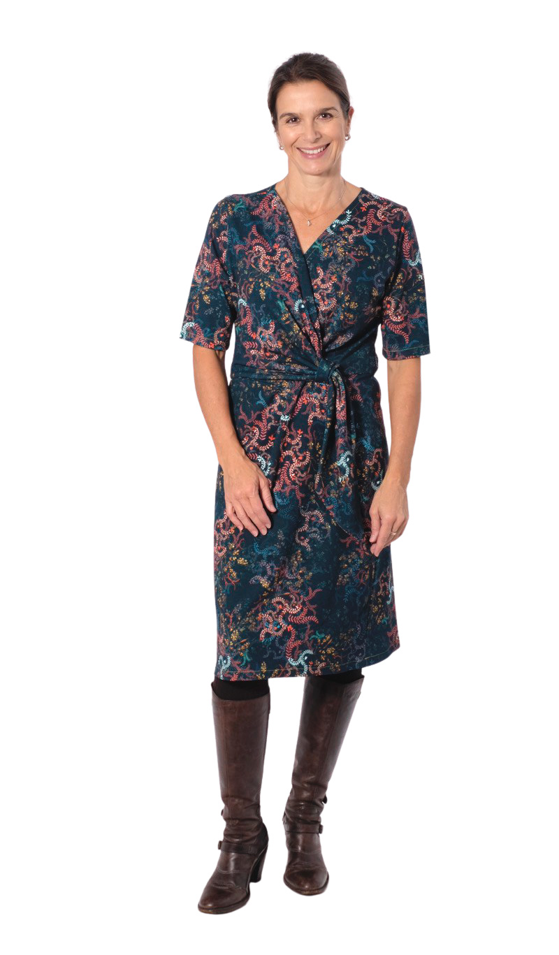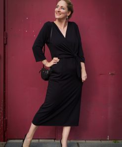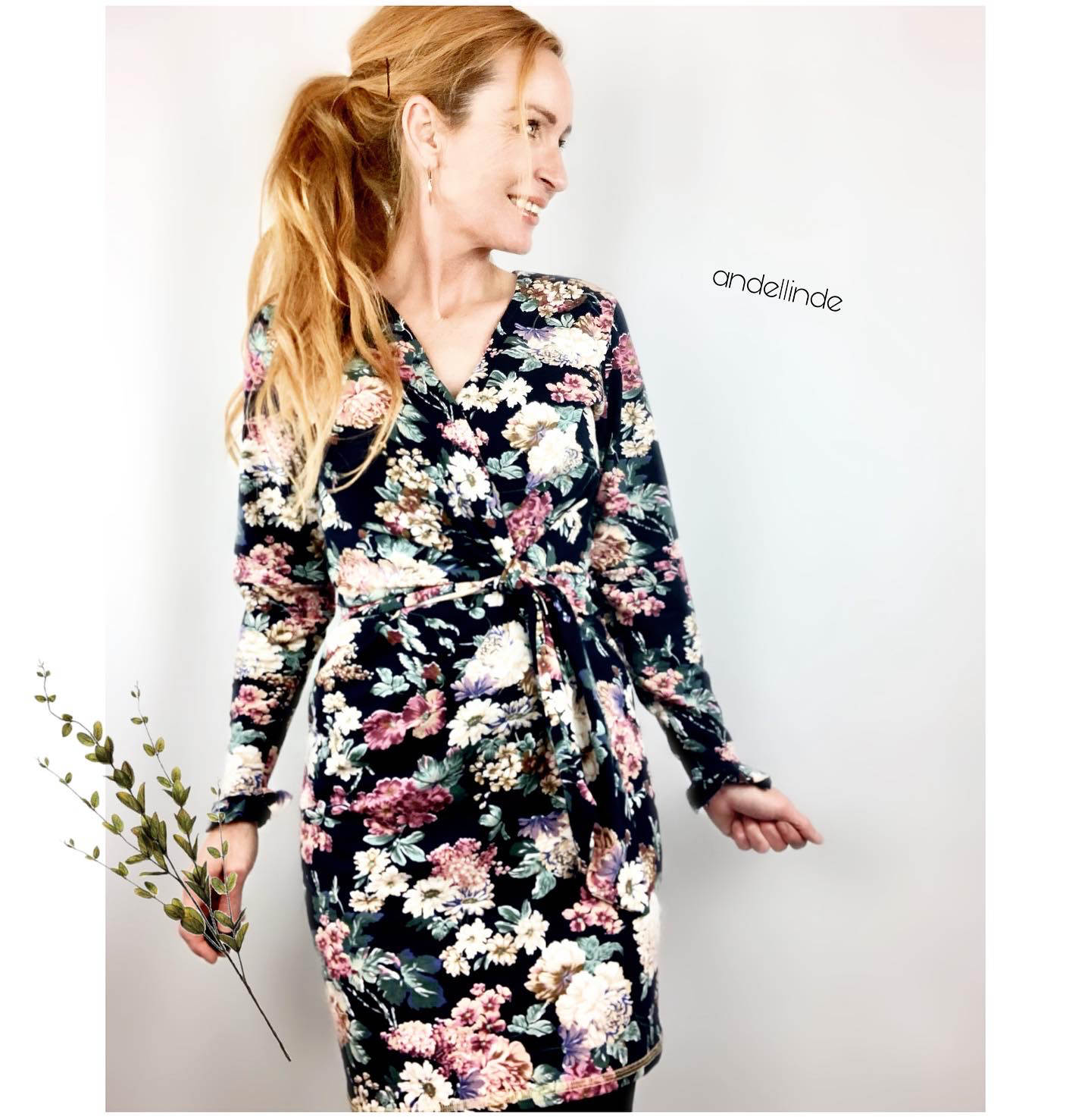 Ein raffiniertes Kleid mit Knoten und Wickeloptik, welches durch die Auswahl des Stoffes immer wieder anders aussehen wird. Das Kleid kannst Du in langer Midi Länge, knielang, mit kurzem oder langem Arm nähen. Das Schnittmuster ist sehr vielseitig und jedes Kleid bekommt durch die Stoffauswahl immer einen neuen Look. Es gibt viele Ideen kreativ zu werden. Das im Video gezeigte dünne Einfassband findest Du hier.