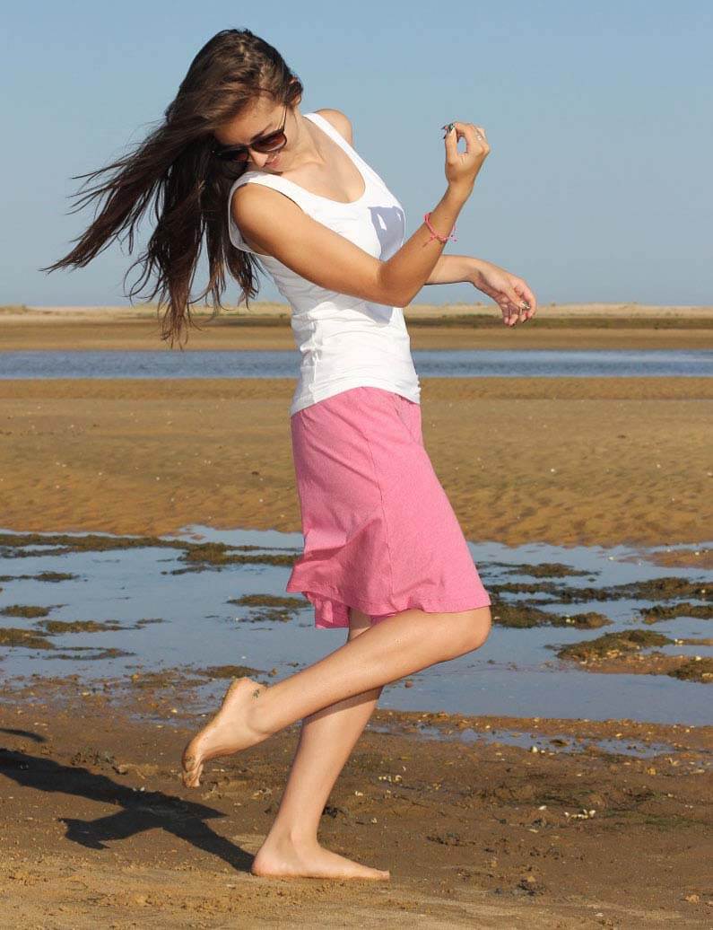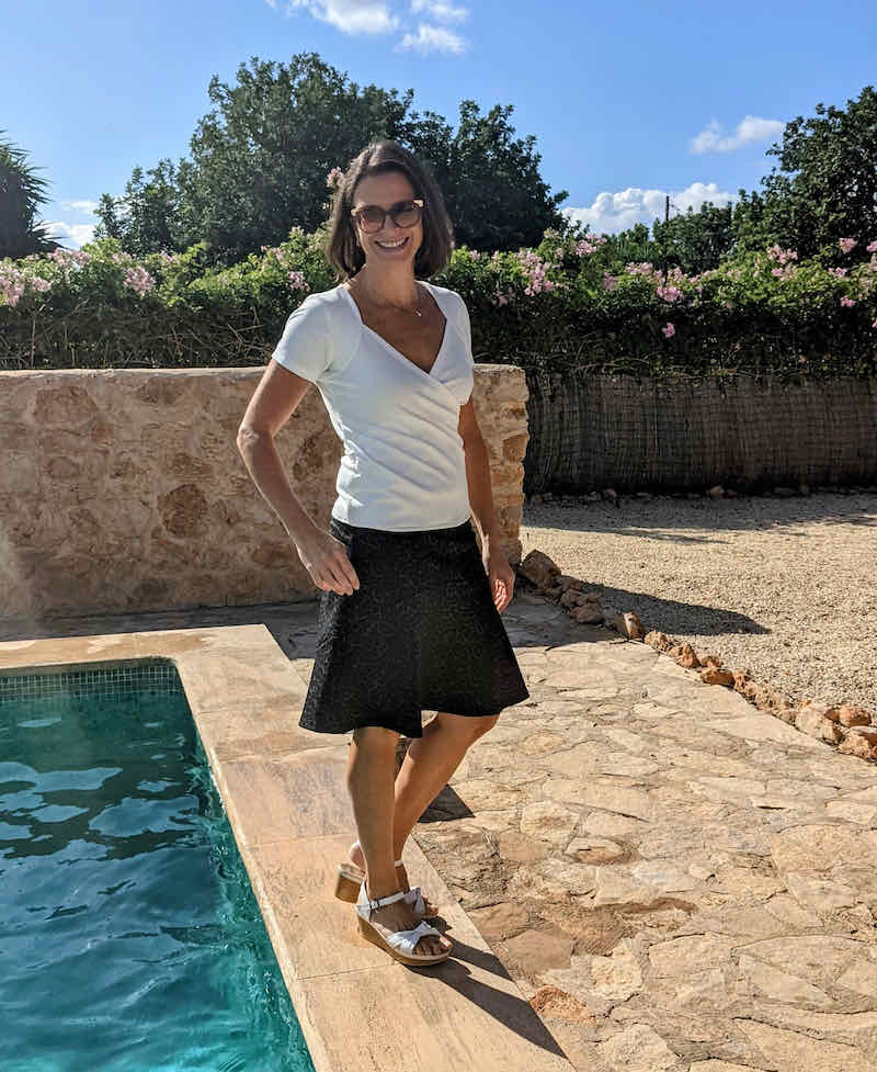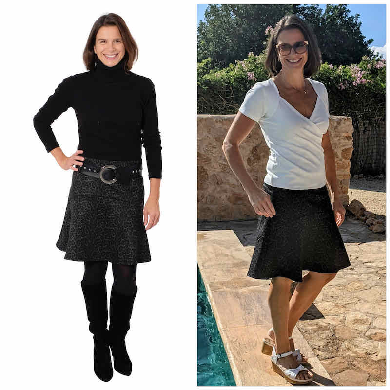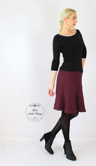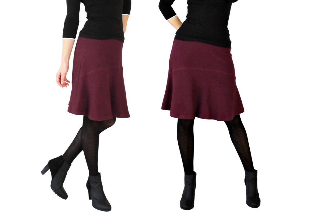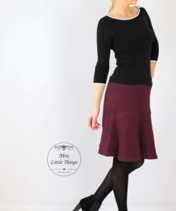 Du möchtest einen super einfachen Rock nähen? Dann liegst Du mit diesem Modell genau richtig. Nehme dafür aber einen dehnbaren Stoff, denn stabile Stoffe gehen nur mit einem Reißverschluss. Das wäre dann die Variante für Fortgeschrittene. Der Rock mit Belegverarbeitung zaubert eine hübsche Silhouette und ist für viele Figuren sehr gut geeignet. Oben ist der Rock gerade bzw. figurnah geschnitten, die unteren Teile sind glockig und ausgestellt. Du kannst den Rock mit oder ohne Teilungsnähte verarbeiten, im Ebook sind alle Schritte ganz genau beschrieben. Das Schöne an dem Rock ist, dass man ihn aus allen Stoffen nähen kann, somit ist er auch das ganze Jahr über tragbar. Ein Futter dazu ist auch mit beinhaltet.