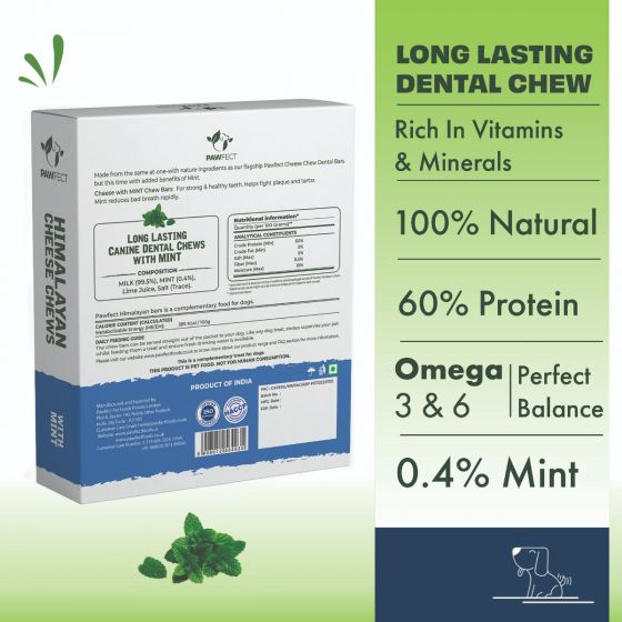 Pawfect Himalayan Cheese Dental Chew Bar mit Minze, gegen Mundgeruch (3 Riegel à 65 g)