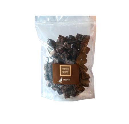 Unsere handlichen Kausnacks aus Pferdelunge sind ideal für zwischendurch, denn sie lassen sich aufgrund der knackigen Beschaffenheit und der kleinen Größe bestens als feine Belohnung einsetzen.