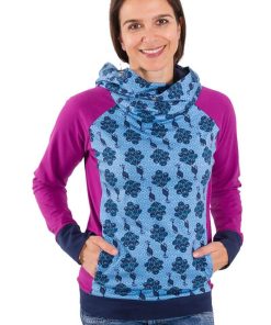 Diesen coolen Pullover mit Raglanärmeln kannst Du mit oder ohne Ösen bzw. mit doppelter oder einfacher Kapuze bzw. mit Schalkragen nähen. Zusätzlich hat das Shirt eine nach vorne verlegte Seitennaht mit Eingriffstaschen. Du kannst den Effekt mit unterschiedlichen Stoffen besonders hervorheben oder auch nur aus einem Stoff nähen. Es gibt hier wie immer viele Möglichkeiten.