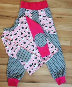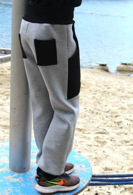 Diese Hose ist ein wirkliches Allrounder Modell. Du kannst sie in verschiedenen Variationen nähen: mit oder ohne Bündchen am Saum – als einfache Hose mit oder ohne Taschen – als Wendehose mit oder ohne Taschen (ideal für kältere Tage) – mit oder ohne aufgesetzte Taschen hinten