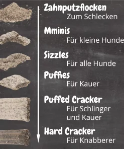 Alle Hunde lieben die dünnen Kauschlangen „SIZZLES“, denn sie sind wie Chips. Und für kleine Mäulchen oder sehr kausensitive Hunde sehr gut geeignet.