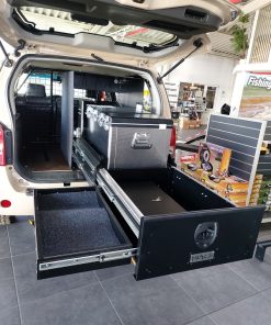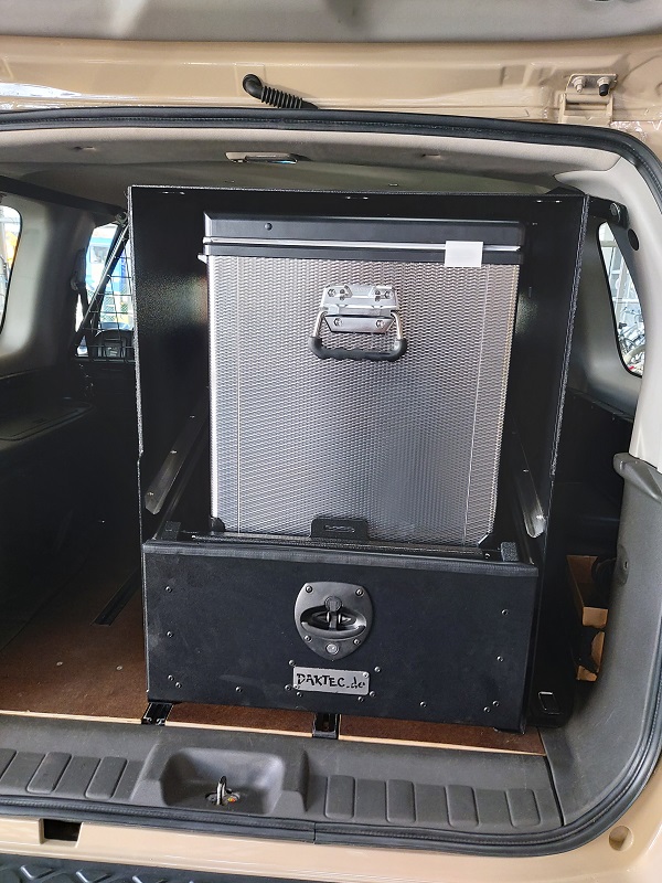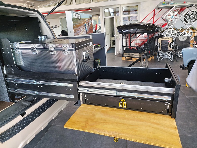 Die „DAKTEC / Quick Pitch Mini Kitchen“ wurde entwickelt, um ein Problem zu lösen, welches fast jeder Camper oder Overlander kennt, die mangelnde Fläche zum Verstauen optimal auszunutzen. Wenn Sie eine Kühlbox in Ihrem Fahrzeug oder Anhänger haben, können Sie nichts auf oder unter dem Kühlschrank verstauen, wodurch wertvoller Platz verschwendet wird. Die Miniküche löst dieses Problem, indem eine Schublade sowie eine Holzarbeitsplatte unter dem Kühlschrank versteckt ist, die große Schublade kann für Besteck oder Becher verwendet werden und die Arbeitsplatte aus Holz zum Schneiden der Zutaten.