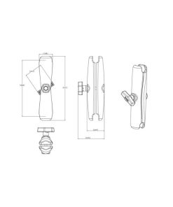 Langer RAM Mounts Verbindungsarm für zwei C-Kugeln (1,5 Zoll) und einer Gesamtlänge von ca. 230 mm. Der Verbindungsarm wird zwischen zwei C-Kugeln montiert und mittels Drehverschluss fixiert sobald die gewünschte Positionierung gefunden ist.