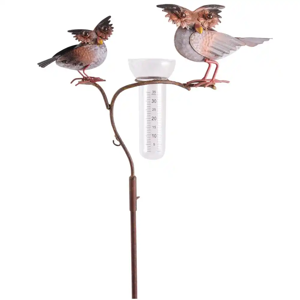 - Hübscher Regenmesser auf Erdspieß mit dekorativen Eulen