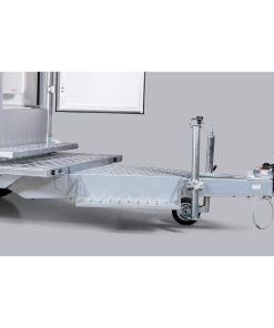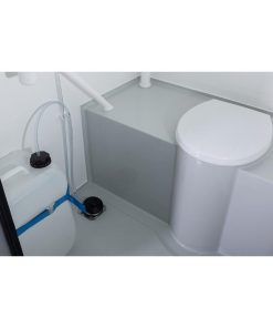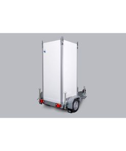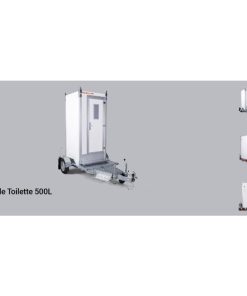 Ein Toilettenwagen mit allen notwendigen Dingen. Müheloser Transport. Hängen Sie den Anhänger an ein Auto und fahren Sie mit ihm zum gewünschten Ort. Schließen Sie das Netzteil an, sichern Sie es mit den Stützbeinen und die Toilette ist betriebsbereit! Ein Stützrad erleichtert das Rangieren des Anhängers, falls dies erforderlich ist.