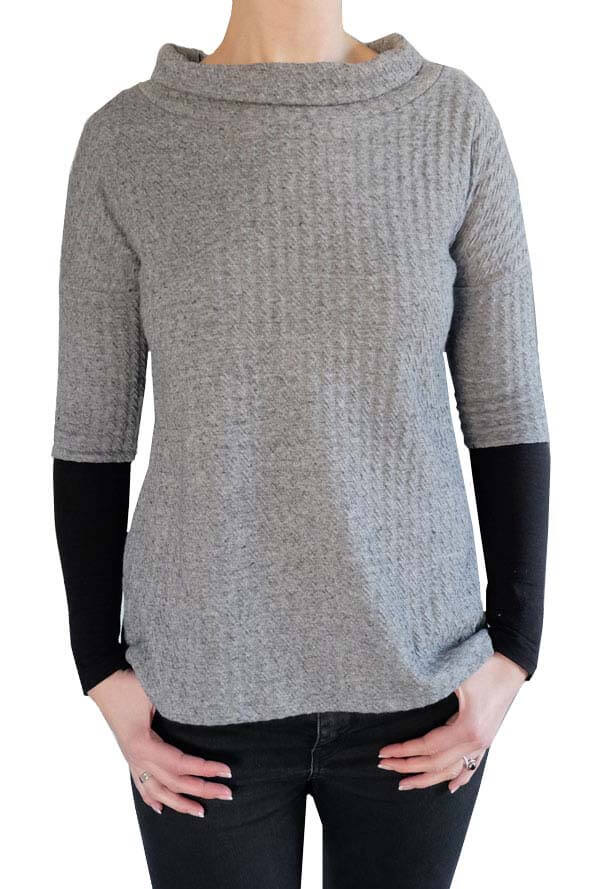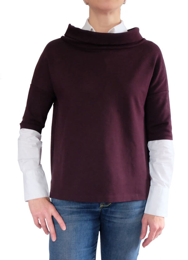 Stoffempfehlung: Dickere, aber weich fallende Stoffe. Zu feste und steife Stoffe sind nicht empfehlenswert. Wir haben weiche Strickstoffe und Punto di Roma bzw. Romanit Qualitäten verarbeitet. Dickere Sweatshirtstoffe sind auch ideal für das Modell.