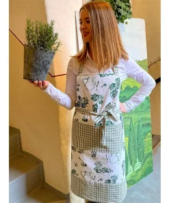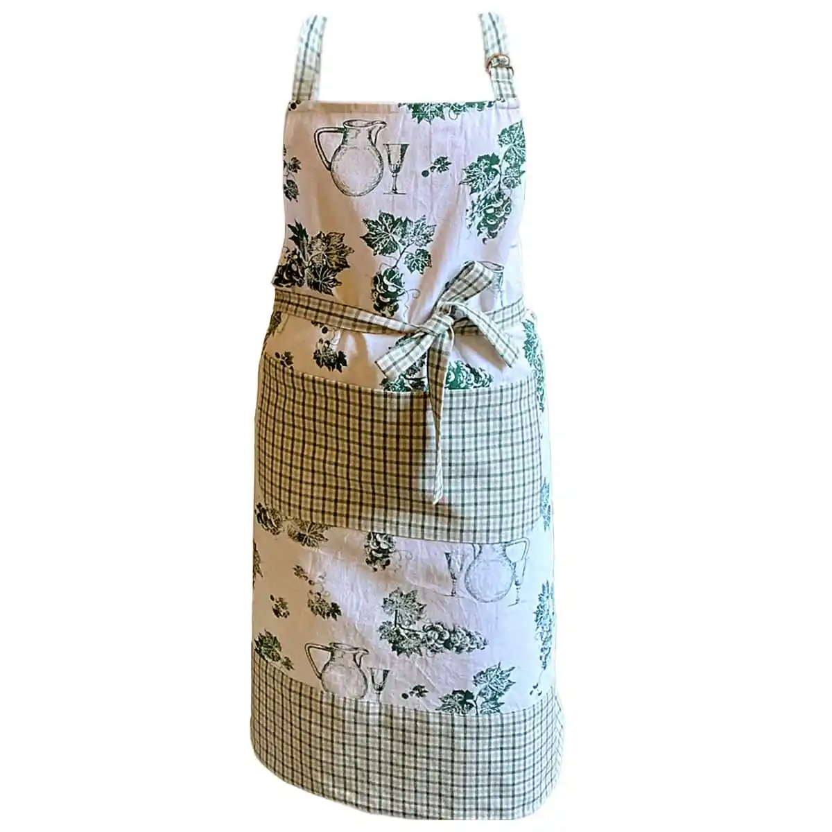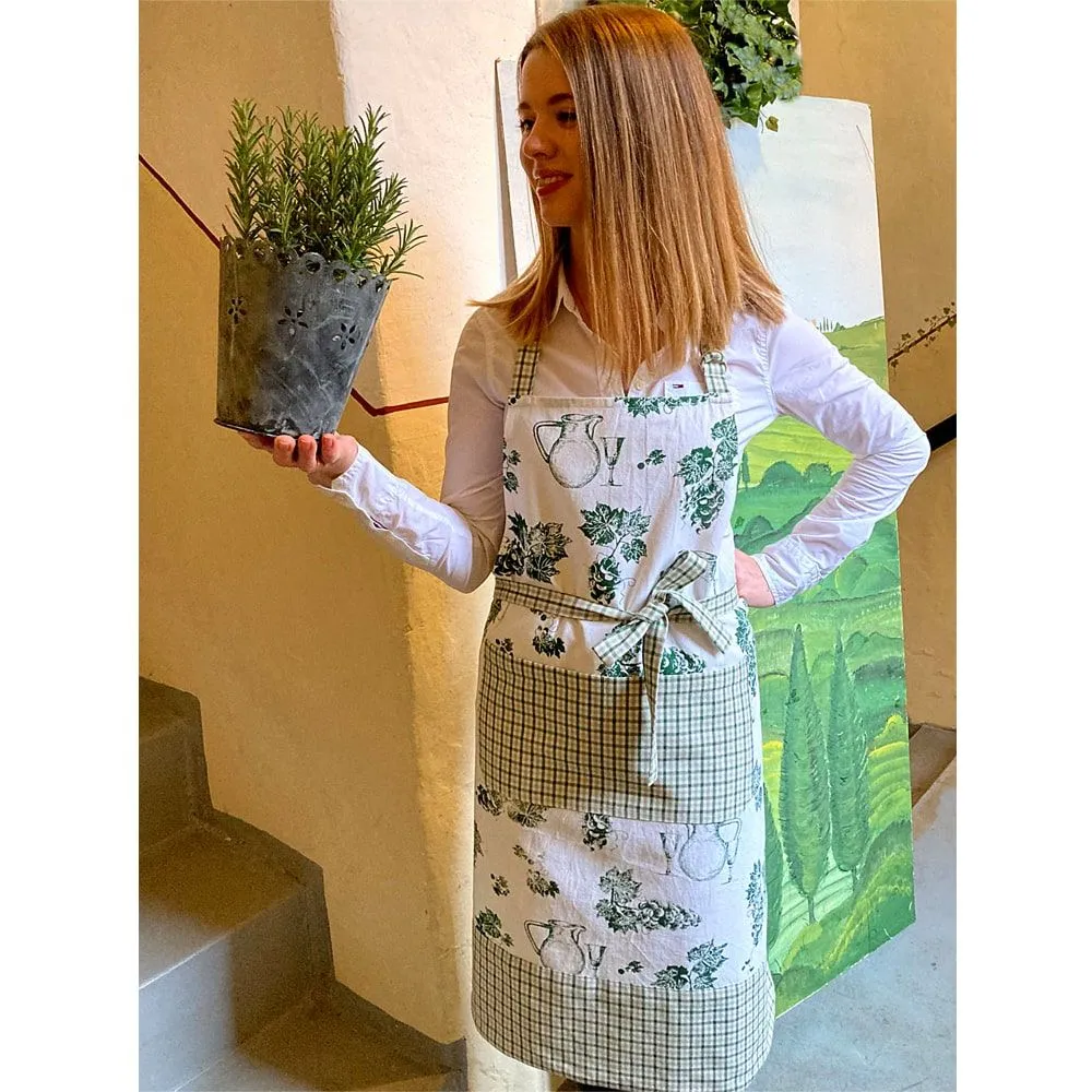 Schürze Latzschürze ELENI Wein Trauben Karo beige grün 70×85 cm Landhaus 1 Stk