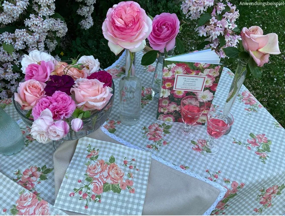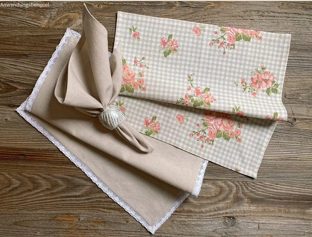 - Serviette / Stoffserviette mit Rosenmotiv im trendigen Landhausstil bedruckt – für alle Fans und Liebhaber