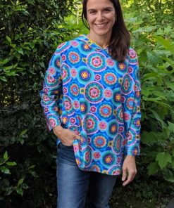 Ein einfaches, aber schönes Shirt. Durch die Auswahl des Stoffes und verschiedener Bänder wird das Shirt immer wieder anders aussehen. Du kannst damit also Deiner Kreativität freien Lauf lassen. Das Shirt ist leger weit geschnitten. Halte Dich an die Maßtabelle. Wenn Du zwischen zwei Größen steckst, kannst Du ruhig eine Nummer kleiner nähen, da genug Weite im Shirt ist.