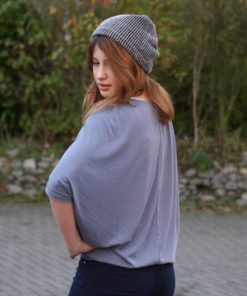 Wir lieben dieses Teil, weil es so vielseitig kombiniert werden kann. Ob es sportlich oder chic kombiniert wird, es ist ein idealer Begleiter für unterwegs. Das Teil sollte aus weichen und dünneren Qualitäten genäht werden, daher ist es für Anfänger nicht unbedingt zu empfehlen. Die Schwierigkeit liegt hier eher in der Verarbeitung des Materials. Wir haben hier einen dünneren Strickstoff, Viskosejersey als auch Modaljersey verwendet.