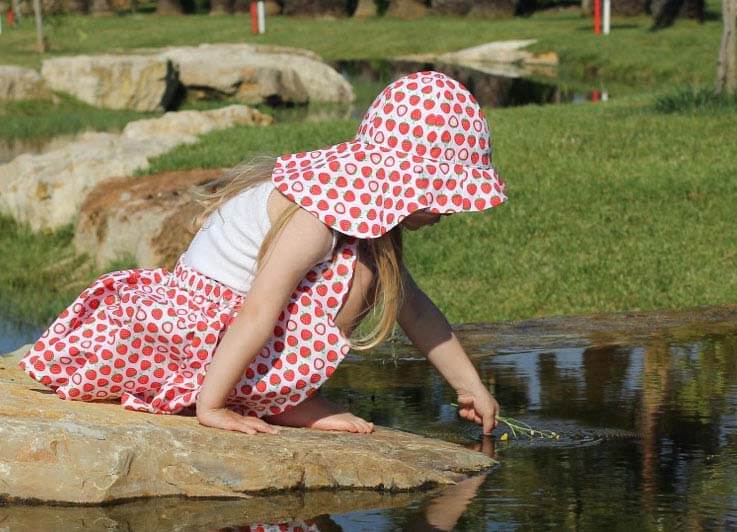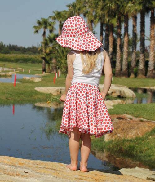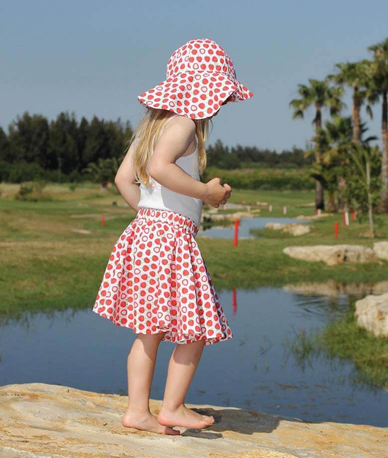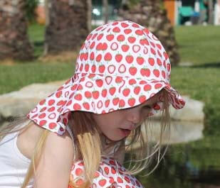 Mit diesem Sommerhut kann die Sonne scheinen, das Gesicht und der Nacken sind super geschützt! Mit diesem Schnitt kannst Du einfach und ohne viel Aufwand eine bezaubernde Kopfbedeckung selbst machen und das perfekte Sommeroutfit kreieren. Ein ähnliches Modell ist “Andrea und Andreas”, das ist auch für Jungs gut geeignet.