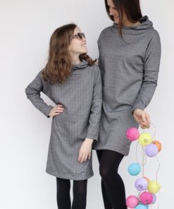 Ein sehr hochwertiger Jacquard Stretch. Das Material eignet sich für Westen, Kleider, Röcke, Hosen und vieles mehr. Die linke Warenseite kann auch als rechte Warenseite verwendet werden. Abbildung Schnittmuster Hose Tela und Dakota in Dunkelgrau, Kleid Marika in Hellgrauer Farbe und weitere Schnittmuster in anderer Musterung aber in gleicher Qualität.