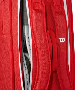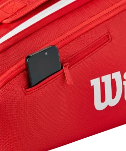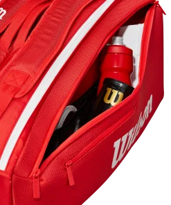 Genießen Sie die tadellose Qualität und den professionellen Nutzen der neuesten Super Tour-Taschenkollektion von Wilson in majestätischem Rot, der ikonischsten Farbe der Marke. Diese Tasche bietet Platz für bis zu neun Schläger sowie Kleidung und Zubehör und verfügt über zwei Hauptfächer, eines davon mit Thermoguard-Futter zum Schutz des Inhalts vor extremen Temperaturen. Zwei große und ein kleines Außenfach bieten praktischen Platz für kleinere Gegenstände wie Geldbörse, Handy oder andere Wertgegenstände. Dank der verstellbaren, gepolsterten Riemen lässt sie sich wie ein Rucksack tragen, und dank des robusten Tragegriffs lässt sie sich auch in der Hand tragen.