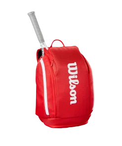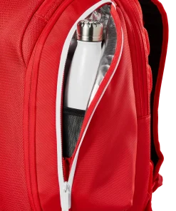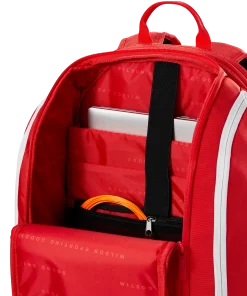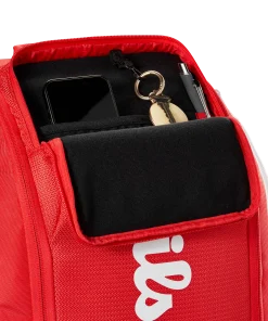 Genießen Sie die tadellose Qualität und den hohen Nutzen der neuesten Super Tour-Taschenkollektion von Wilson in majestätischem Rot, der ikonischsten Farbe der Marke. Der Super Tour Red Rucksack wurde für mehr Komfort und Tragekomfort neu gestaltet und eignet sich dank eines überarbeiteten Reisegurts mit neuem Schaumstoff und Mesh, der in die Rückwand und die Schultergurte integriert ist, perfekt als Handgepäck. Neben dem gepolsterten Fach für zwei Schläger mit verschließbaren Reißverschlüssen verfügt die Tasche über mehrere Fächer, darunter ein gepolstertes Laptopfach und Zubehörteiler für eine einfache Organisation. Zu den weiteren Features gehören ein Reißverschlussfach für Schuhe zur getrennten Aufbewahrung schmutziger Ausrüstung und ein mit Thermoguard gefüttertes Seitenfach für Getränke oder Lebensmittel.